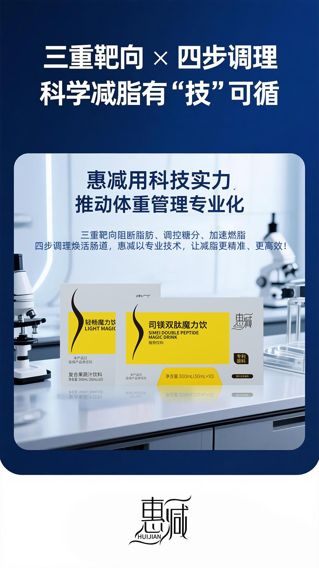 惠减产品从原料采购到生产加工,每一个环节都严格把控,确保产品品质。在原料采购环节,惠减严格筛选优质供应商。以惠减轻畅魔力饮为例,选用的都是天然、无污染的果蔬原料,确保产品的天然纯净;惠减司镁双肽魔力饮中使用的类 GLP - 1 机制成分等,也都经过了严格的检测,确保其安全性和有效性。