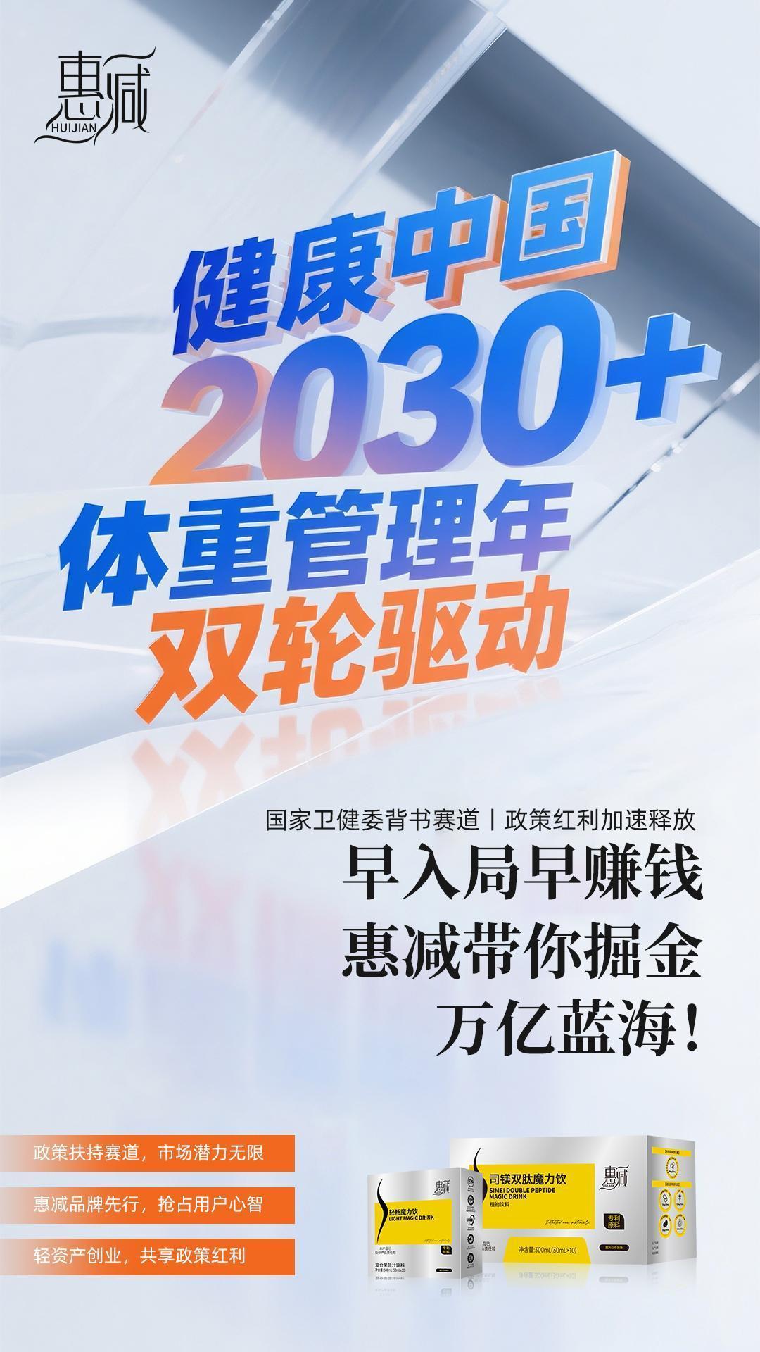 惠减品牌在健康体重管理领域有着深厚的发展历程。品牌深度参与了“健康中国2030”行动,积极响应国家卫健委“体重管理年”的号召,致力于为广大消费者提供科学、健康、有效的体重管理解决方案。